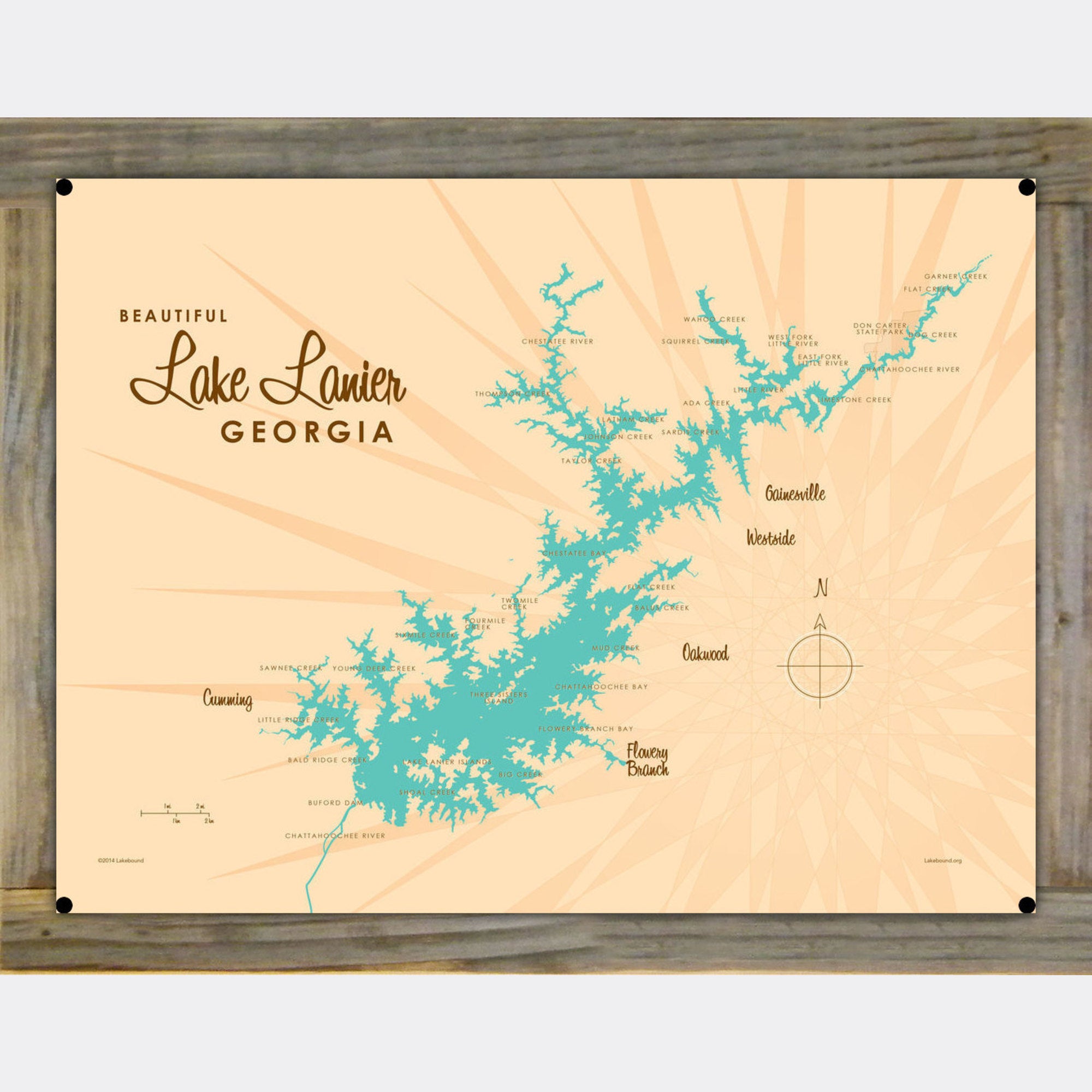 Lake Lanier Georgia, Wood Mounted Metal Sign Map Art – Lakebound®